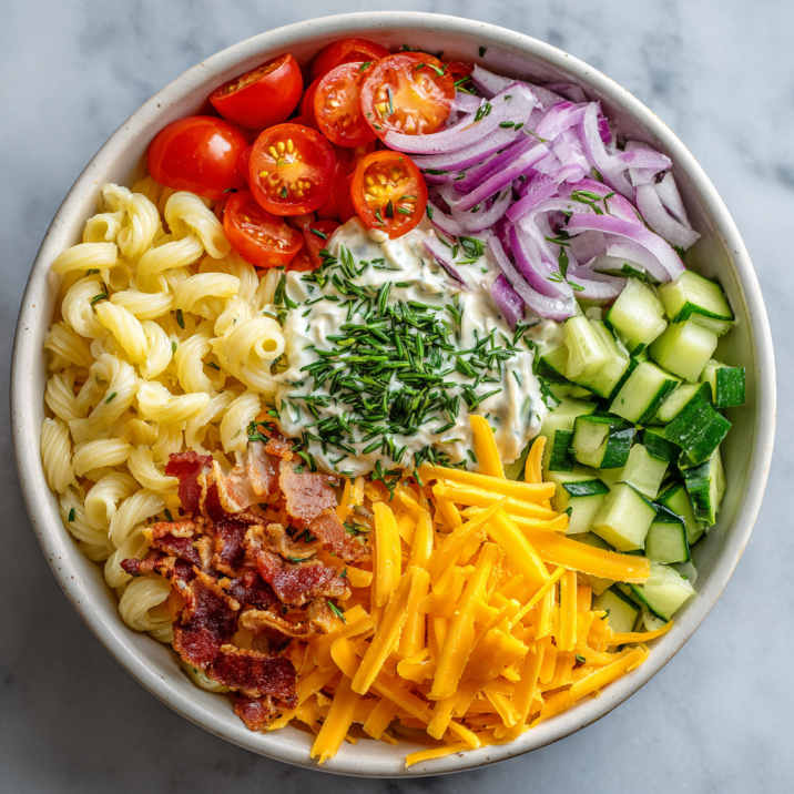 • Bacon Ranch Pasta Salad – Add crispy bacon crumbles