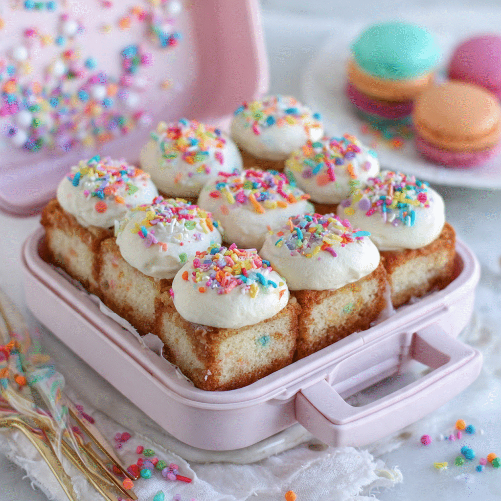 The Funfetti Birthday Bento Cake | Colorful Mini Cake Idea is the perfect blend of fun, color, and soft bakery-style texture. From the fluffy crumb to the creamy vanilla frosting, every bite brings joy and celebration. Whether it’s a birthday, holiday, or everyday treat, this cake always brings smiles.