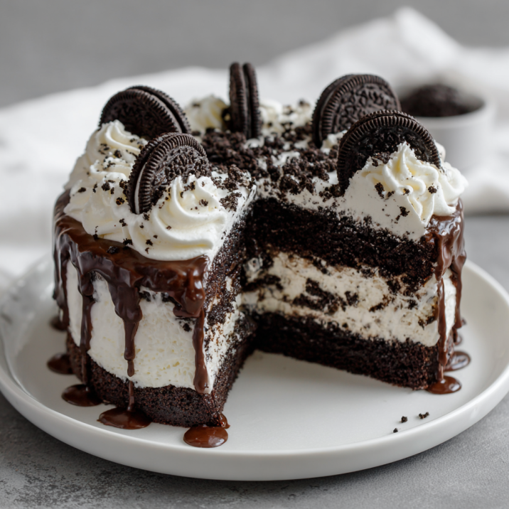 Oreo cookies bring the perfect contrast of deep cocoa flavor and creamy filling. When combined with chocolate cake and velvety Oreo whipped cream, you get a dessert that feels nostalgic and indulgent.