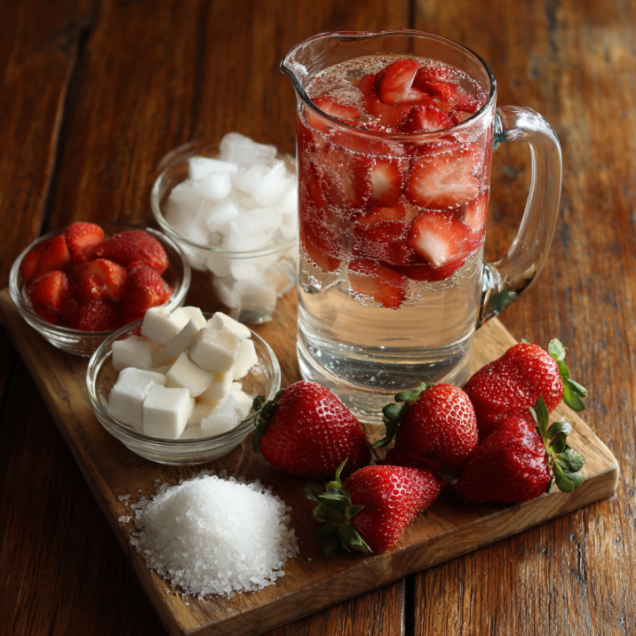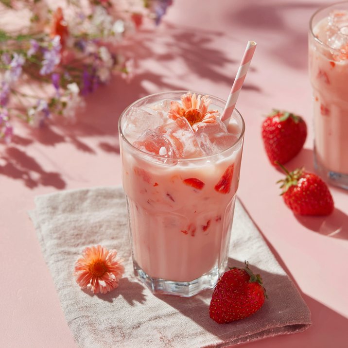 Fresh strawberries give the drink its fruity sweetness and signature pink color.