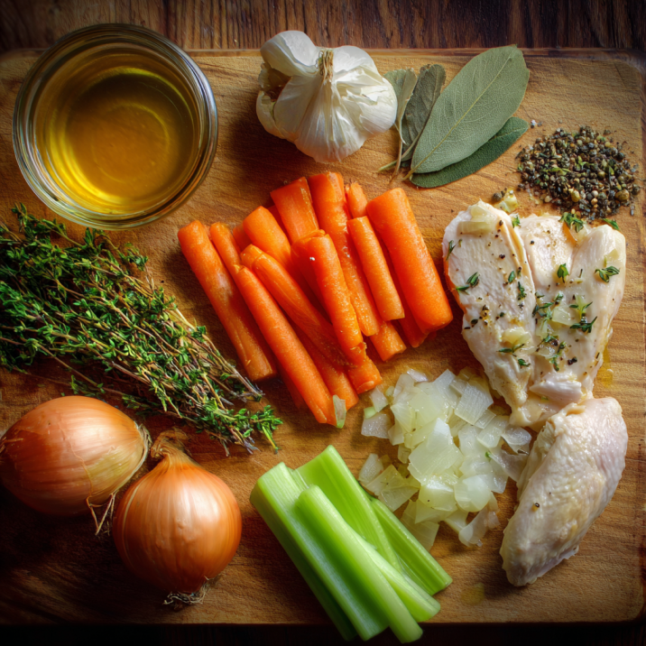Carrots, celery, onions, and garlic create a classic soup base that’s both comforting and nutritious.